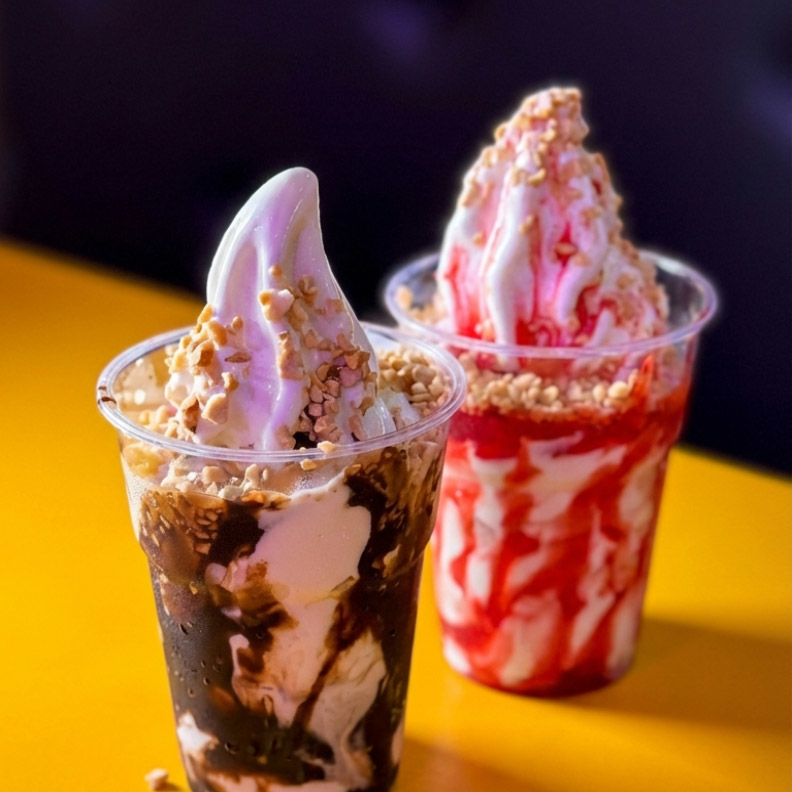Delicioso sorvete com calda e Amendoim.