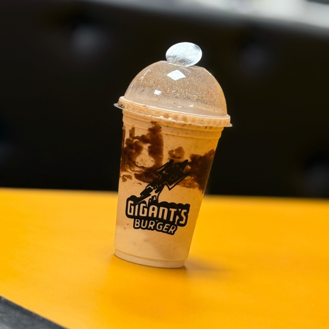 Delicioso milkshake batido com sorvete, farofa de paçoca e Nutella.